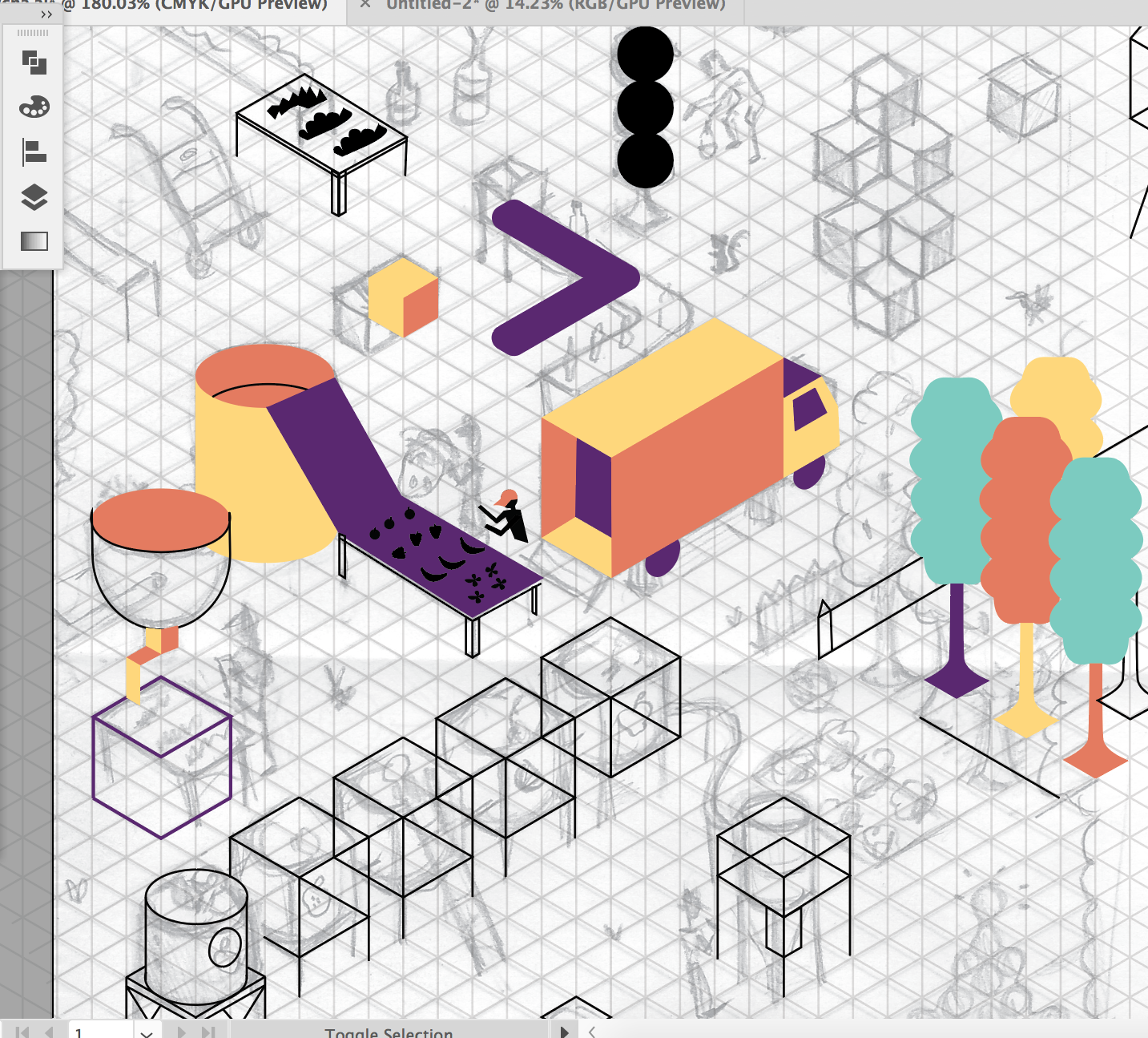 Branding for a Kombucha Brand using a colorful isometric illustration.