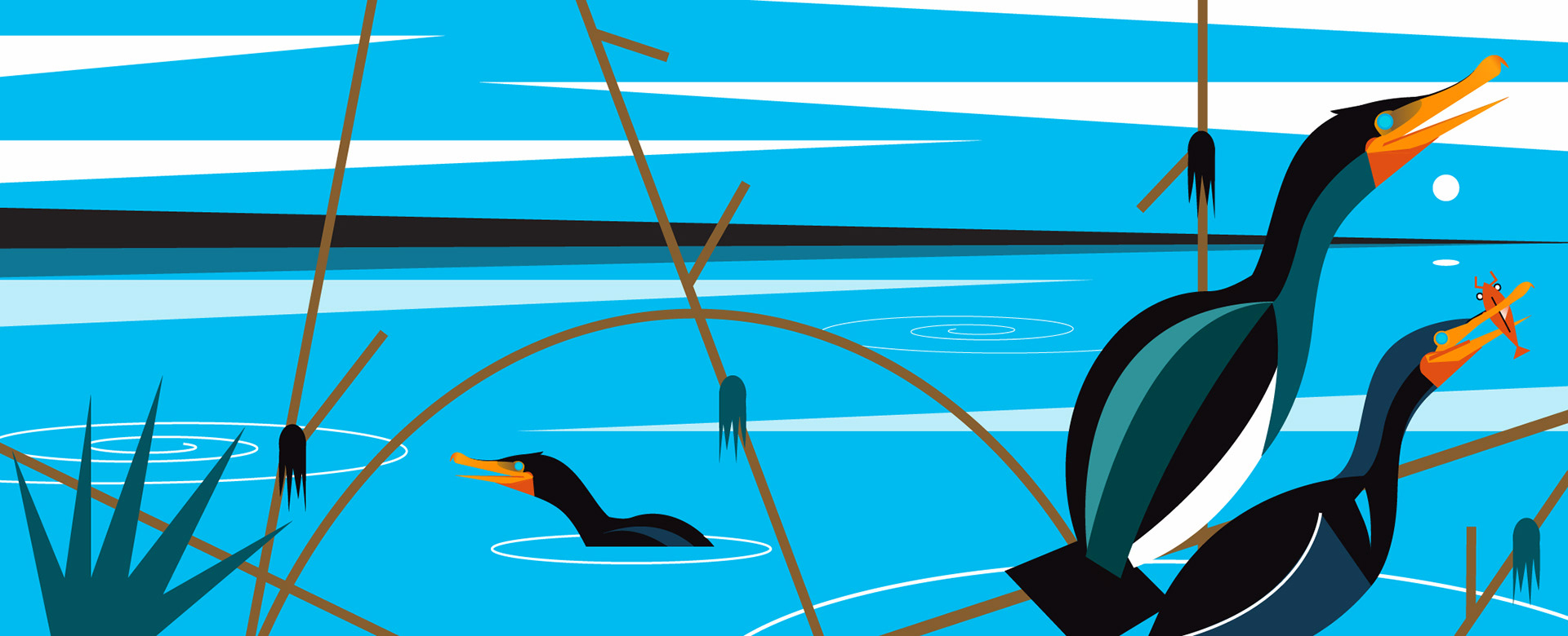 2 Cormorants illustration selected for the Signal Box Project in Pinellas County.